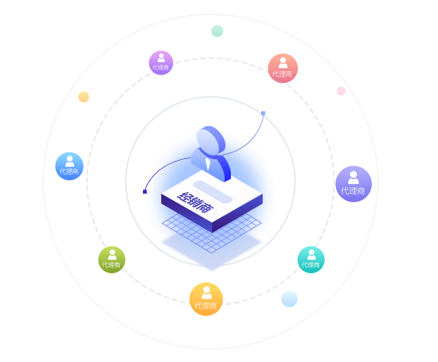 代理自主注册、经销商批量创建快速生成代理推广资质,一、二级均提供独立管理后台,可获取专属推广链接、二维码快速收单